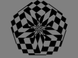 On commence par créer une nouvelle composition (160x120, couleur de fond gris "808080") avec un calque solide de taille 640x480 (on le prend plus grand que la composition car il va tourner). On le choisit de couleur noire pour le moment et on lui applique l'effet "Volet en diaphragme en x" qui se trouve dans les effets de "Transitions". Le nombre de "pointes" est réglé sur 10 et le "rayon externe" sur 30. On obtient un pentagone (le nombre de "pointes" représente le double du nombre de côtés, pour obtenir un triangle par exemple on aurait pris 6 "pointes", 8 pour un carré, etc). On a la forme de base et on veut maintenant qu'en dupliquant ce calque, d'autres pentagones viennent se positionner en forme de cercle (et ce de façon équidistante), centrés autour du milieu de la composition. On ajoute l'expression suivante sur la propriété de position: